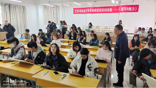 3月5日上午,Beat365唯一官方网站邀请陕西省美术学科教学能手,安康中学高级美术教师何涛老师在江北2202阶梯教室为首届卓越美术教师师资班同学们做《速写的魅力》讲座,讲座由美术系主任杜敏主持。