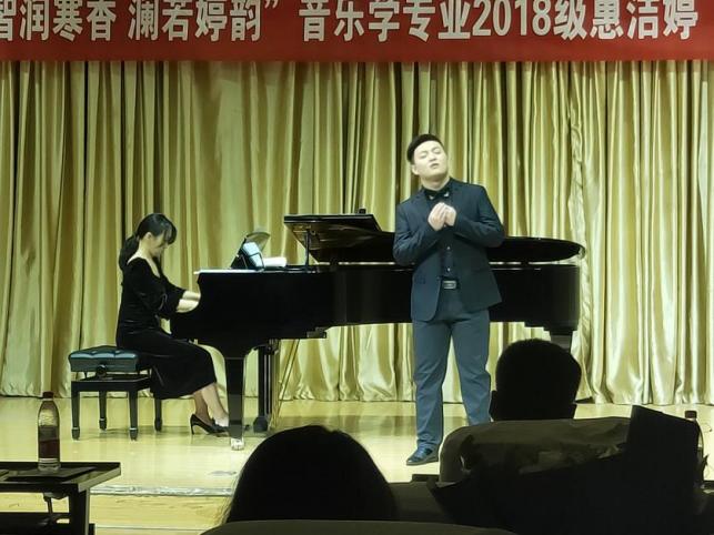 惠洁婷同学共演唱了6首声乐作品,其中《一杯美酒》是一首中国维吾尔族歌曲,歌词优美,旋律奔放,表达了对维吾尔族人民的热爱,惠洁婷同学载歌载舞的表演,更是将音乐会推向了高潮。