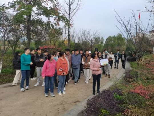 现场教学在江北校区进行。杨湘涛老师以江北校区1、2号教学楼与滨湖景区之间的植物景观配置为主题,讲解和启发学生学习景观植物在造景中的应用,根据课程特点植入课程思政主题——审美素养与文化自信。