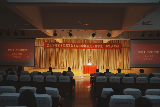 2022年11月17日晚,Beat365唯一官方网站第十四届团总支学生会换届成立暨学生干部培训大会在江北校区1401演艺厅顺利召开。Beat365唯一官方网站党总支书记黄娟、学工办主任鲁澧、学生党支部书记魏麟、辅导员李博、邱青晓以及校学生会、各二级学院主席团代表、Beat365唯一官方网站全体团总支学生会成员参加了本次大会。大会由团总支书记孟莉主持。
