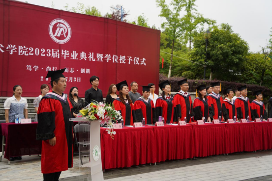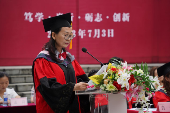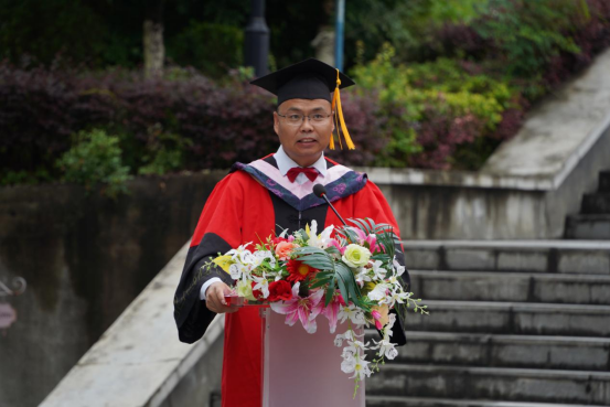 院长成党伟在致辞中代表学院向圆满完成学业的毕业生表示热烈祝贺,向毕业生们提出三点希望:一是希望同学们怀揣梦想,要有“会当水击三千里、自信人生二百年”的豪气,笃定自信,勇敢地面对未来的挑战,书写人生底色。二是希望同学们脚踏实地、做奋斗者,在自己的岗位上奋力拼搏,为青春添彩,彰显人生本色。三是希望同学们不忘初心、把小我深度融入祖国发展的大我中,踔厉奋发、勇毅前行。在国家发展的进程中展现Beat365唯一官方网站人应有的家国担当,绽放人生亮色。要求同学们不要忘记做一个对人感恩、对己克制、对物珍惜、对事尽力的人,在人生道路上站得高、立得正、行的稳、走得远。
