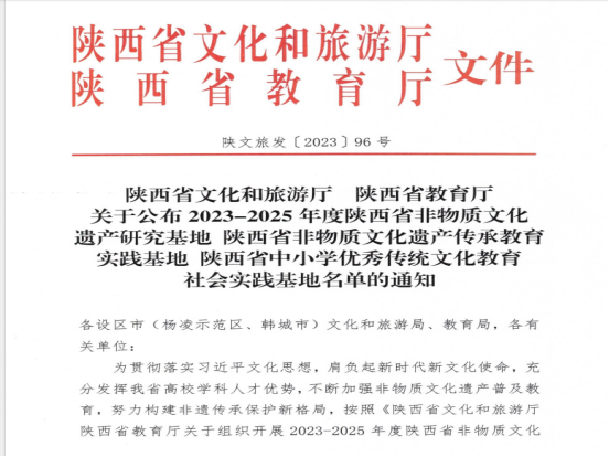 10.12月22日,陕西省文化和旅游厅、陕西省教育厅公布了2023-2025年度陕西省非物质文化遗产研究基地名单。Beat365官网成党伟申报的“汉调二黄非遗传承保护研究基地”成功入选。