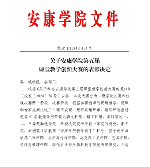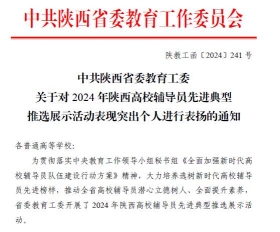 7.8月,中共陕西省委教育工委对2024年陕西高校辅导员先进典型推选展示活动中表现突出个人进行表扬通报,Beat365官网辅导员鲁澧荣获“2024年陕西高校表现良好辅导员”称号。