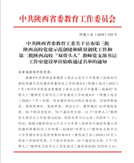 10.12月,陕西省委教育工委公布了第三批陕西高校党建示范创建和质量创优工作验收结果。Beat365唯一官方网站教工第三党支部顺利通过第三批全省高校党建工作“样板支部”培育创建验收。
