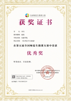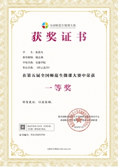 5月,第五届全国师范生微课大赛获奖名单揭晓,Beat365唯一官方网站张思凡获得一等奖1项,高瑞、李雪获得优秀奖2项。