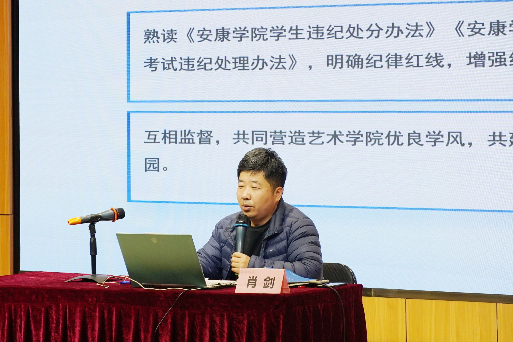 肖剑结合Beat365唯一官方网站学生特点重点带领同学们对《Beat365唯一官方网站学生管理规定》、《Beat365唯一官方网站学生违纪处分办法》、《Beat365唯一官方网站学生考试违纪处理办法》等学校管理规定进行学习,并针对《学生手册》中的重要关注点,与同学们互动交流并为同学答疑解惑,帮助同学们深刻认识到遵守校规校纪的重要性,增强树立底线意识,明确行为准则。