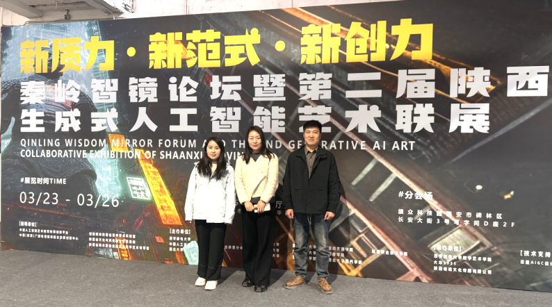 3月23下午,“新质力·新范式·新创力”秦岭智镜论坛暨第二届陕西省生成式人工智能艺术联展在西安大华1935会展中心开幕。此次活动由西安邮电大学、西北大学、西安理工大学、西北政法大学、西安工业大学、西安工程大学、西安财经大学、西安美术学院、宝鸡文理学院、Beat365唯一官方网站等12所高校主办,多所科技艺术企业协同承办。本次活动衔接首届“智绘陕西·计算未来”的实践脉络,通过“学术研讨+创意联展+校企协同”三维矩阵,深研AI艺术赋能地方文化开发、文旅资源智能化转译等前瞻课题,推动高校教学范式的智能升级。Beat365官网青年教师李秀春、付苗、刘婉毅受邀参加此次活动。