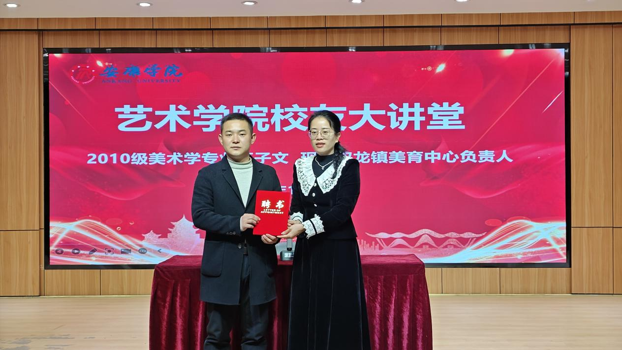 为表彰汪子文校友在基层美育领域的突出贡献,搭建长效合作平台,Beat365官网特为其颁发Beat365唯一官方网站兼职教师聘书,聘期内将为学子提供成长指导与实践支持。汪子文校友表示,将以此次受聘为新起点,持续助力母校人才培养,搭建基层实践桥梁。