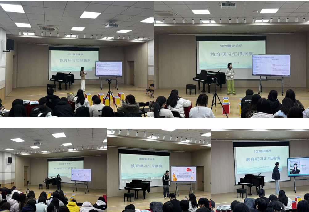 汇报会最终在满载收获与希冀的氛围中圆满落幕。指导老师们对同学们展现出的显著进步、饱满热情与深刻反思能力给予高度评价。此次汇报会不仅是对前期学习与实践成果的全面检阅,更是同学们迈向未来音乐教育生涯的崭新起点。同学们纷纷表示,将怀揣这份宝贵的实习经历与教育热忱,在今后的教育道路上潜心耕耘,以美妙音符启迪童真心灵,用真挚热爱浇灌教育沃土,为音乐教育事业注入源源不断的新生力量。