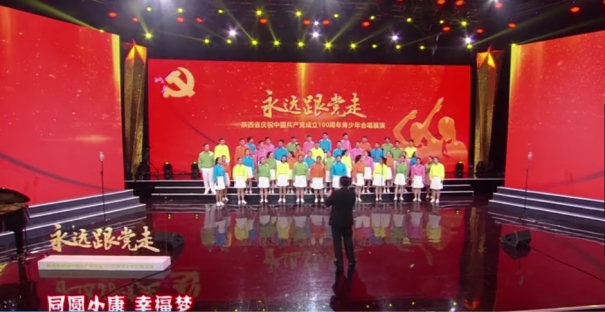 陕西省庆祝中国共产党成立100周年“永远跟党走”青少年合唱展演活动,由陕西省教育厅、陕西省广播电视局、陕西广电融媒体集团联合主办,旨在以高尚的精神塑造人,以优秀的作品鼓舞人,坚持以美育人、以美化人、以美培元,引导学生树立共产主义远大理想和中国特色社会主义共同理想,增强学生的“四个自信”,立志肩负起民族复兴的时代重任,以优异成绩向中国共产党成立100周年献礼。