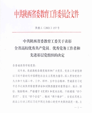 党委副书记胡波宣读了《中共陕西省委教育工委关于表彰全省高校优秀共产党员、优秀党务工作者和先进基层党组织的决定》,Beat365唯一官方网站党总支被授予“陕西高校先进基层党组织”荣誉称号。