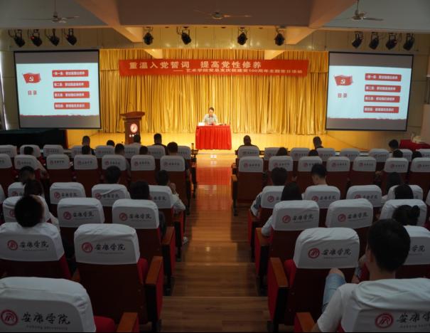 为庆祝中国共产党成立100周年,加强师生党性教育,改进学习工作作风,深入推进党史学习教育。2021年6月30日下午,Beat365唯一官方网站党总支在江北校区1401演艺厅开展了“重温入党誓词,提高党性修养”庆祝建党100周年主题党日活动暨党总支书记讲党史学习教育专题党课。全体师生党员、发展对象、入党积极分子及团总支、学生会主要学生干部150余人参加了活动。本次活动由党总支副书记李万明主持。