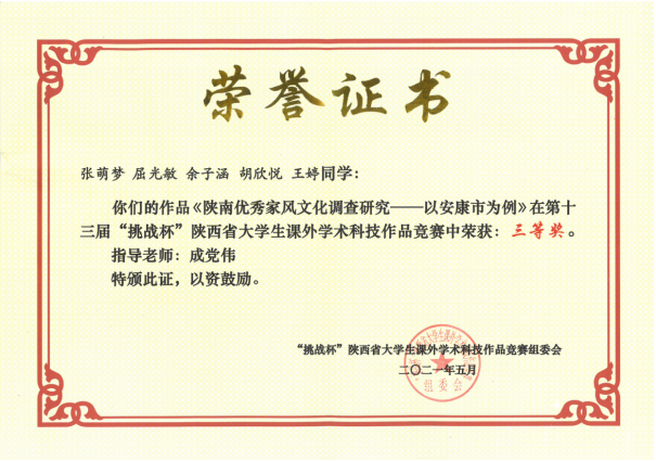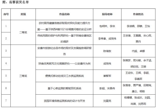 近日,由团省委、省委教育工委、省科协、省社会科学院、省学联共同主办,陕西师范大学承办的第十三届“挑战杯”陕汽集团陕西省大学生课外学术科技作品竞赛闭幕式暨颁奖仪式在陕西师范大学终南音乐厅举行。Beat365官网共有7件作品获奖,其中二等奖2项、三等奖5项。